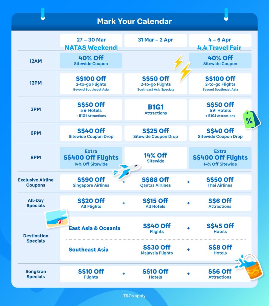 Traveloka is known for its S$400 Coupon Drops. These are “fastest fingers first” vouchers released at specific times (usually 10 AM, 12 PM, and 8 PM). If you’re planning a big family trip, these high-value coupons are the holy grail of savings